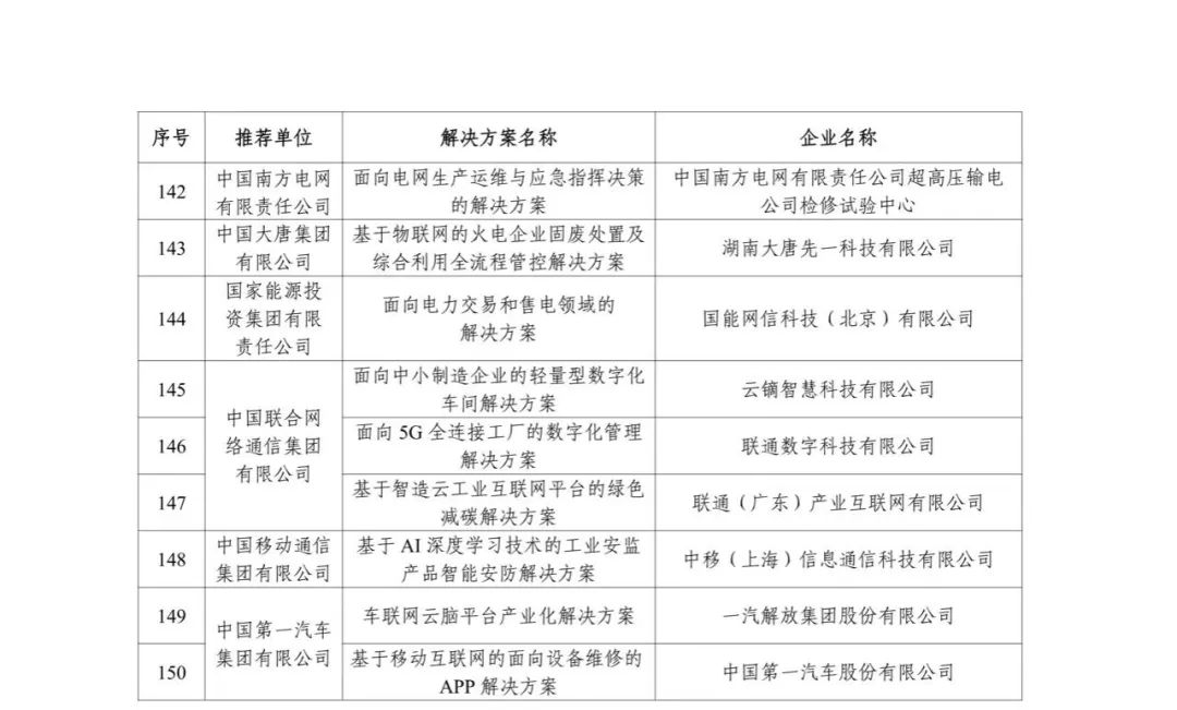 關于公布2022年工業互聯網APP優秀解決方案名單的通知