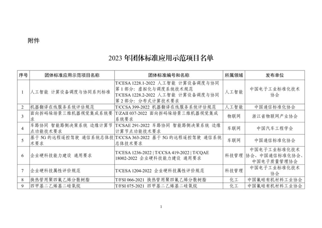 109項!工信部公布2023年團體標準應用示范項目