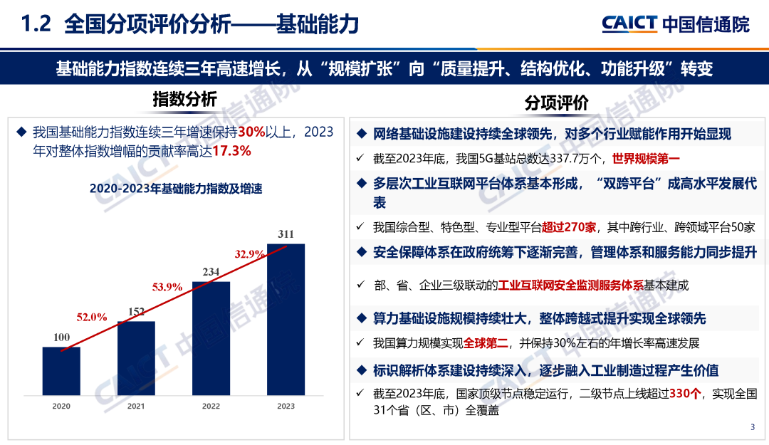 (一)基礎能力指數連續三年高速增長,從“規模擴張”向“質量提升、結構優化、功能升級”轉變