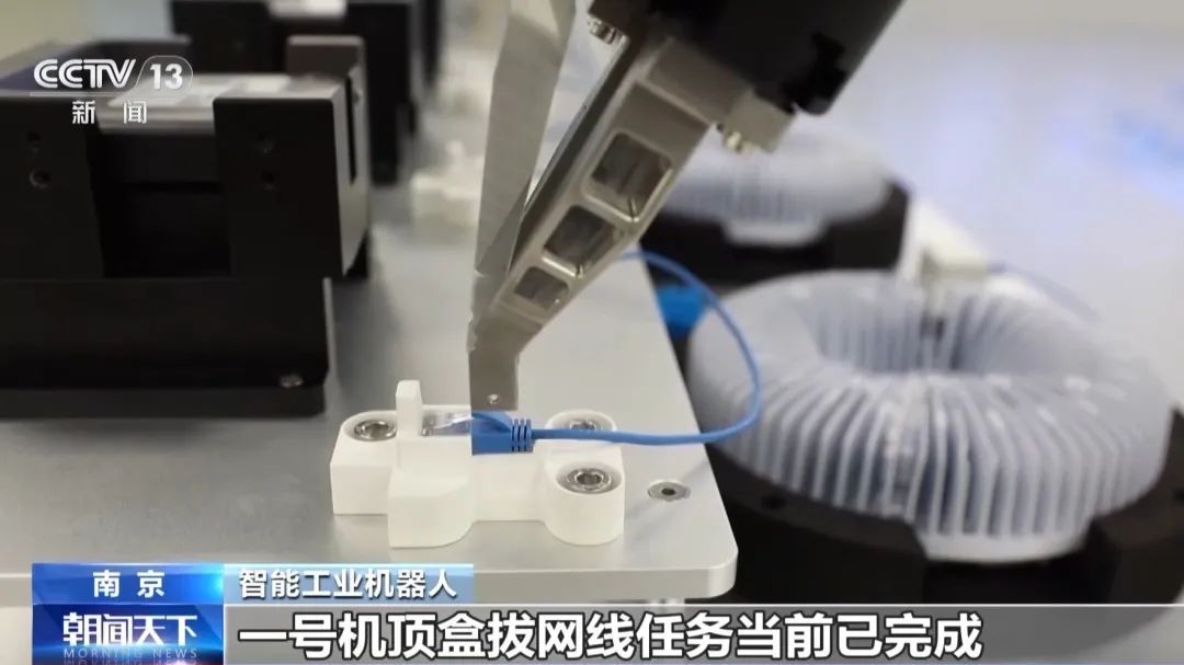 總臺記者現(xiàn)場也體驗了一下工廠正在開發(fā)的人機交互作業(yè)。記者先后發(fā)出拔出、插入機頂盒網(wǎng)線的指令,精細化的操作,智能工業(yè)機器人都順利完成。