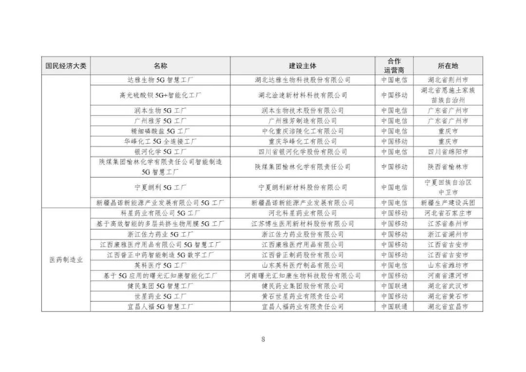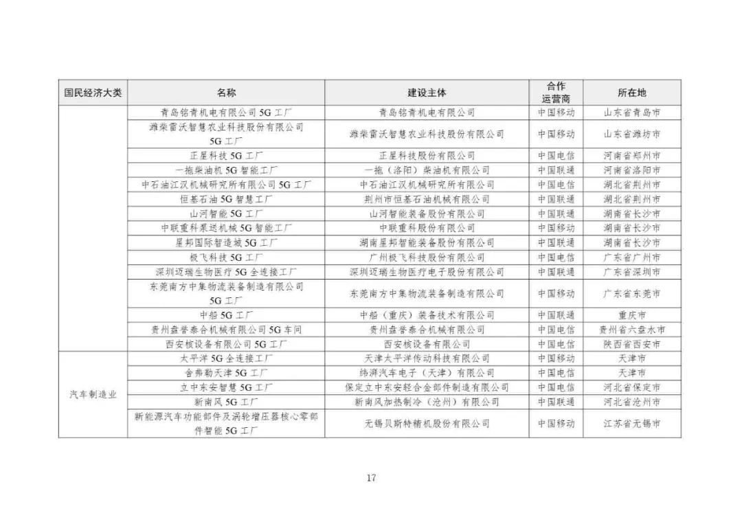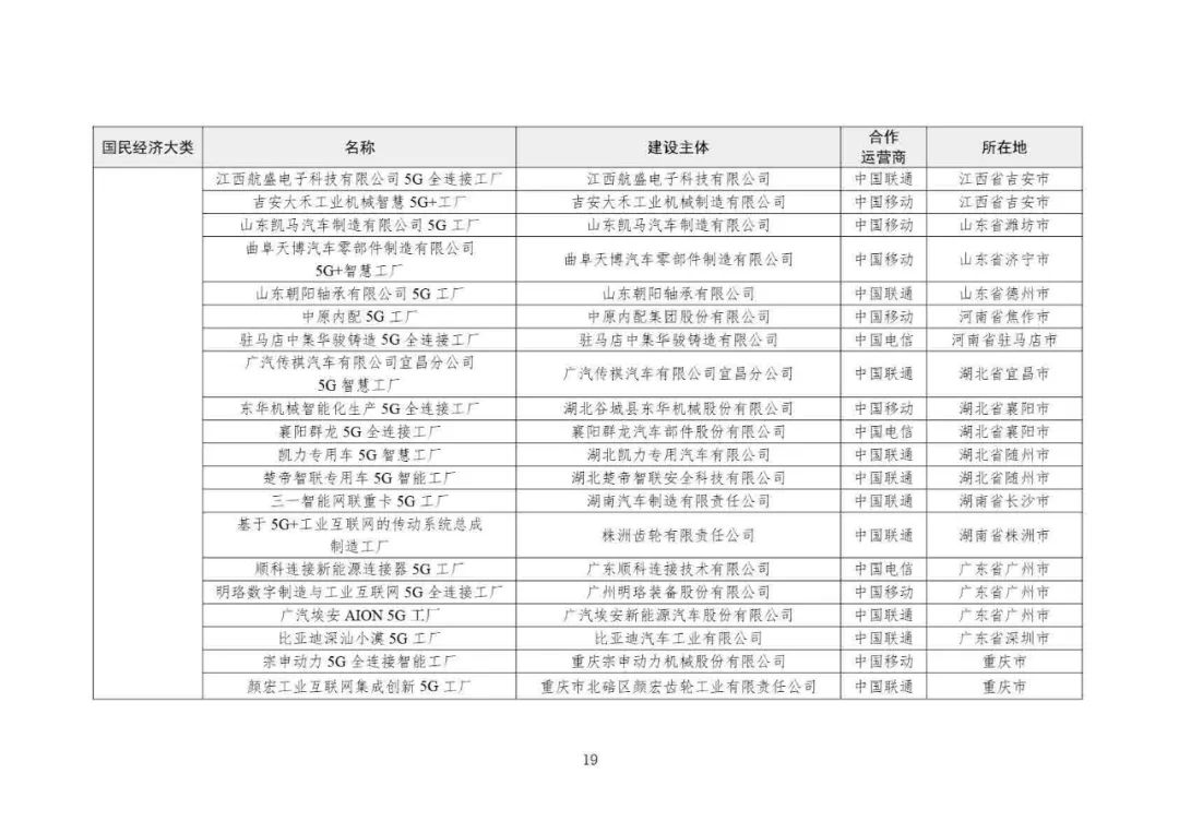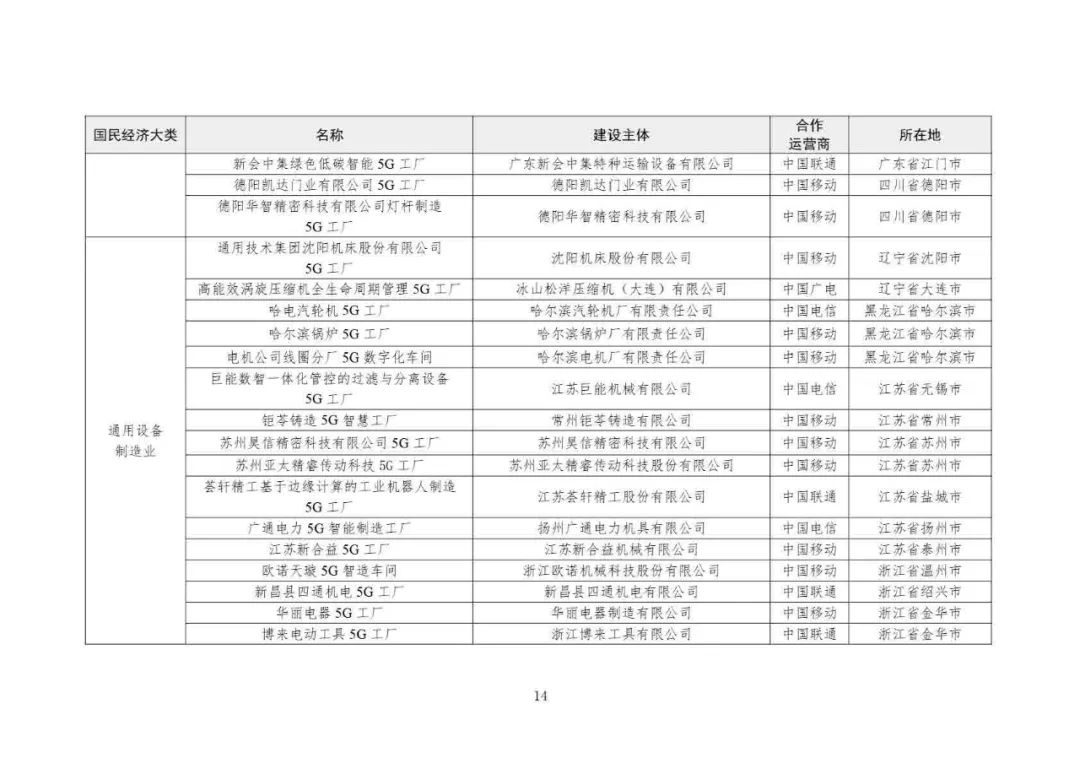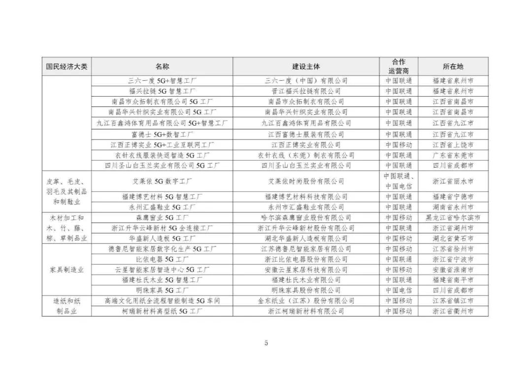 2025年5G工廠名錄: