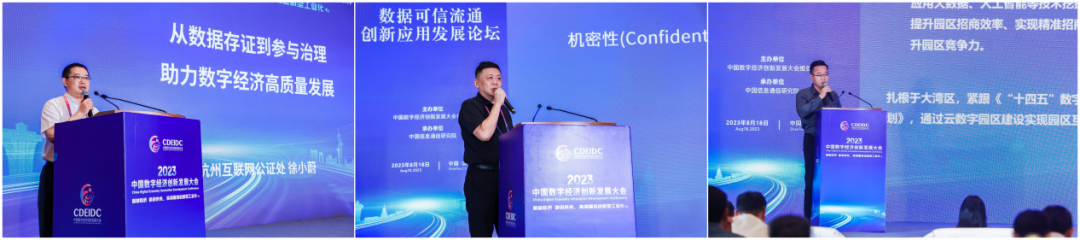 主題分享環(huán)節(jié),杭州市互聯(lián)網(wǎng)公證處主任徐小蔚以《從數(shù)據(jù)存證到參與治理,助力數(shù)字經(jīng)濟(jì)高質(zhì)量發(fā)展》為主題,分享了杭州互聯(lián)網(wǎng)公證處依托司法聯(lián)盟鏈實(shí)現(xiàn)在線(xiàn)取證,快速保存實(shí)時(shí)證據(jù)信息,輕松解決取證難題;數(shù)字政府粵東信創(chuàng)適配中心負(fù)責(zé)人陳端濤以《信創(chuàng)發(fā)展--基于數(shù)據(jù)可信安全的應(yīng)用》,介紹了信創(chuàng)及可信安全常用的技術(shù)、方式及閑逛應(yīng)用;集商網(wǎng)絡(luò)(上海)科技有限公司華南區(qū)總裁游文增以《可信數(shù)據(jù)存證在產(chǎn)業(yè)園區(qū)的應(yīng)用》為題,分享了產(chǎn)業(yè)園區(qū)可信數(shù)據(jù)場(chǎng)景及解決方案。