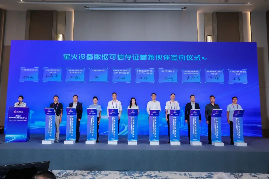 星火設(shè)備數(shù)據(jù)可信存證首批簽約儀式星火設(shè)備數(shù)據(jù)可信存證首批伙伴簽約儀式上,高琦、信通院工業(yè)互聯(lián)網(wǎng)創(chuàng)新中心(廣東)有限公司副總經(jīng)理呂帥分別與中國(guó)信通院泰爾系統(tǒng)實(shí)驗(yàn)室基礎(chǔ)產(chǎn)品與設(shè)施部主任王晨、廣東省互聯(lián)網(wǎng)協(xié)會(huì)秘書(shū)長(zhǎng)傅強(qiáng)、汕頭市互聯(lián)網(wǎng)協(xié)會(huì)副會(huì)長(zhǎng)洪煜、中國(guó)聯(lián)合網(wǎng)絡(luò)通信有限公司汕頭市分公司總經(jīng)理朱翔、中電科普天科技股份有限公司5G事業(yè)部總經(jīng)理孟新予、集商網(wǎng)絡(luò)科技(上海)有限公司華南區(qū)總裁游文增、科達(dá)制造股份有限公司數(shù)字工廠(chǎng)事業(yè)部總經(jīng)理李慶民、廣東新明珠陶瓷集團(tuán)有限公司技術(shù)總監(jiān)李萍共8家單位代表進(jìn)行三方協(xié)議現(xiàn)場(chǎng)簽約,未來(lái),希望通過(guò)星火設(shè)備數(shù)據(jù)可信存證,構(gòu)建ICT廠(chǎng)商、ICT采購(gòu)方雙方數(shù)據(jù)共享、可信平臺(tái),重塑ICT行業(yè)規(guī)范,進(jìn)而使ICT行業(yè)以一個(gè)更健康的步伐向前邁進(jìn)。