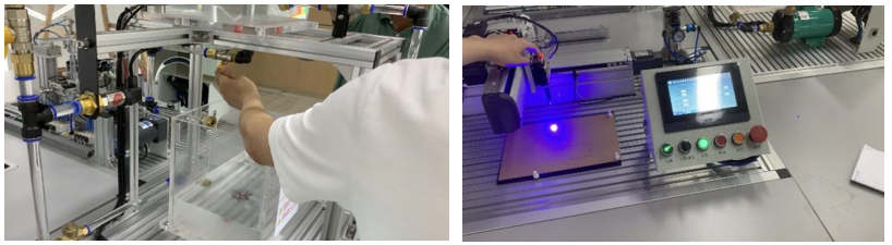 激光切割系統(tǒng)是基于PLC控制的一個(gè)典型的運(yùn)動(dòng)控制與激光切割工作站,該工作站由基礎(chǔ)工作臺(tái)架、直角坐標(biāo)機(jī)器人、畫筆和激光切割工裝組件、畫板組件以及電氣控制系統(tǒng)等部件組成,模擬運(yùn)動(dòng)控制與激光切割系統(tǒng)在工業(yè)生產(chǎn)制造場(chǎng)景中的實(shí)際應(yīng)用。