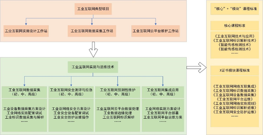 重構(gòu)“核心+模塊”課程標準和教學內(nèi)容。選取典型企業(yè),圍繞制造業(yè)在“智改數(shù)轉(zhuǎn)”中規(guī)劃設計、工程實施、運行維護、數(shù)據(jù)服務、服務應用等典型崗位,通過開展“工業(yè)互聯(lián)網(wǎng)實施與運維”典型項目,提煉典型技術(shù)技能模塊,建設“項目化”課程,實現(xiàn)課程教學與“X”證書相融合的個性化人才培養(yǎng)培訓。實施課程與教材改革計劃,聯(lián)合龍頭企業(yè)打造新形態(tài)經(jīng)典教材,開發(fā)社會認可度高的“X”認證證書,開發(fā)新型活頁式、工作手冊式教材、雙語教材。