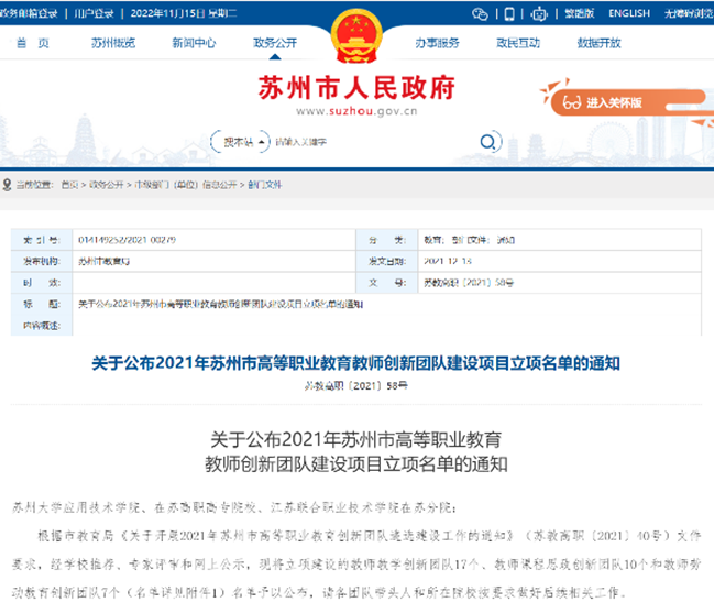 獲批為蘇州市創(chuàng)新教學團隊
