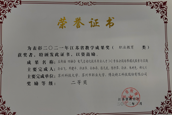 (1)開設工業(yè)互聯(lián)網(wǎng)技術(shù)專業(yè),進行專業(yè)人才培養(yǎng)。基地責任單位蘇州市職業(yè)大學從2019年開始招生工業(yè)互聯(lián)網(wǎng)技術(shù)專業(yè)的學生,目前已經(jīng)連續(xù)招生4屆學生,畢業(yè)生供不應求。與蘇州科技大學聯(lián)合進行專本3+2人才培養(yǎng),雙方以工業(yè)互聯(lián)網(wǎng)方向為培養(yǎng)目標,聯(lián)合工業(yè)互聯(lián)網(wǎng)企業(yè)簽訂三方合作協(xié)議,進行師資互聘、實踐基地共享,共同構(gòu)建“五銜接 四融合”電氣自動化技術(shù)專業(yè)人才3+2專本分段培養(yǎng)模式,相關(guān)教學成果獲江蘇省教學成果2等獎,共同建立的實踐基地獲省產(chǎn)教融合實訓平臺。
