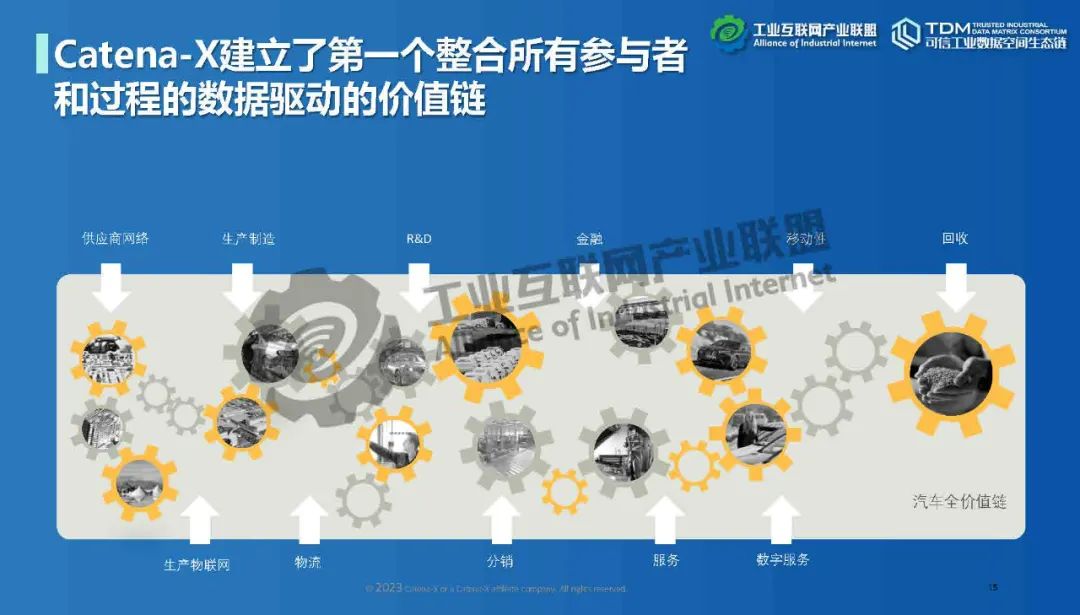 本期為您帶來由德國弗勞恩霍夫協會中國代表處代表楊雯帶來的《國際視野:Catena-X數據空間在汽車領域落地》。介紹了歐洲對數據空間的需求和定義,數據空間標準化、生態發展情況,以及德國弗勞恩霍夫協會與中國信息通信研究院在數據空間領域開展的深入合作。Catena-X旨在形成汽車行業主權可控多層次數據生態,為汽車價值鏈創建數據生態系統,構建全球汽車行業全價值鏈數據生態合作的宏大愿景。