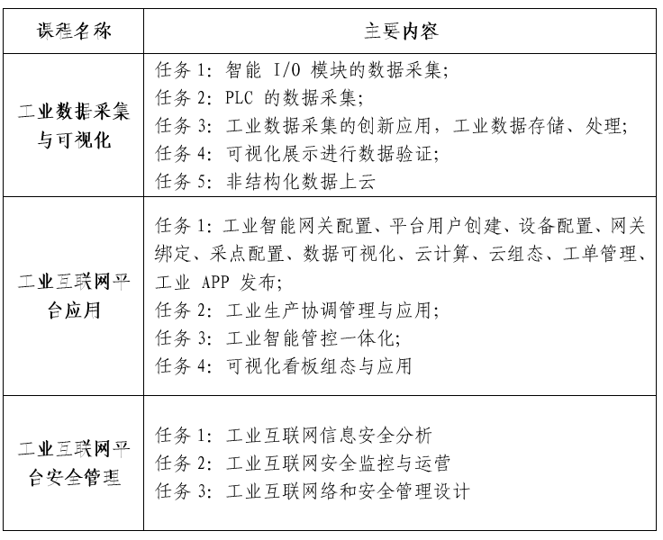 工業(yè)互聯(lián)網(wǎng)平臺應(yīng)用課程設(shè)置: