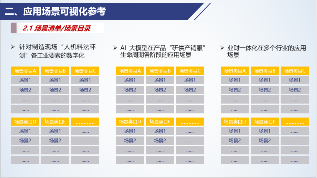 按照特定的順序或類別展示各種應(yīng)用場景的場景列表,企業(yè)和平臺(tái)也需要編制一個(gè)總的場景目錄。