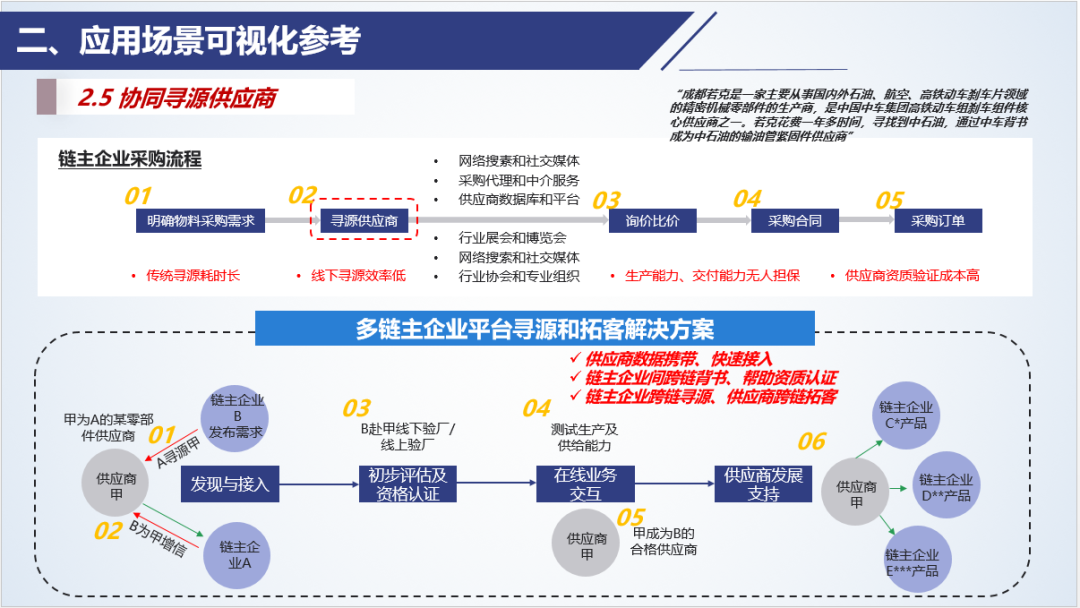 鏈主企業(yè)行動(dòng):對(duì)表現(xiàn)優(yōu)秀的中小供應(yīng)商提供背書,幫助其拓展新的市場和業(yè)務(wù)、以及進(jìn)行融資。