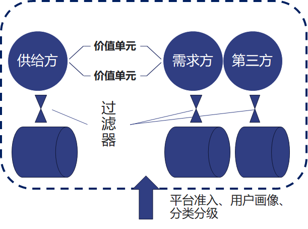 《平臺(tái)革命》提出了“核心互動(dòng)”——一個(gè)平臺(tái)的通用應(yīng)用場景結(jié)構(gòu),即“參與者+價(jià)值單元+過濾器=核心互動(dòng)”,在此本文稱之為“平臺(tái)的價(jià)值交互場景”。