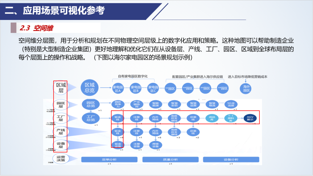 (2)維度參考:研供產(chǎn)銷服產(chǎn)品全生命周期維;設(shè)備產(chǎn)線車間工廠企業(yè)產(chǎn)業(yè)鏈空間維人機(jī)料法環(huán)測等要素維;行業(yè)平臺(tái)的行業(yè)貫通及專業(yè)平臺(tái)的行業(yè)拓展等平臺(tái)體系化的賦能路徑;以及其他前述展示方式中提出的維度及其組合。