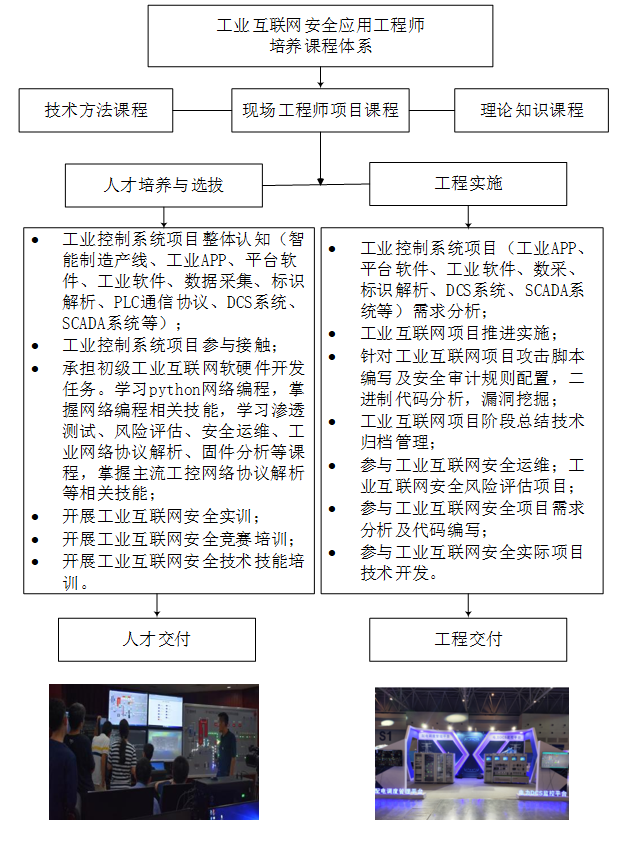 實訓基地建設目標主要有以下幾個方面:(1)構建實訓體系:加強制度建設,建立理論與實踐相結合的高技能人才培訓體系,堅持理念創新、模式創新、機制創新,開發新的課程、探索新的培養模式,如訂單式培養模式等,在實踐中不斷提升實訓質量,解決學員高質量就業問題。圍繞工業互聯網安全工程技術崗位人才儲備和保障隊伍建設需求,強化工業互聯網技術保障、人才儲備和產業帶動。(2)開展校企合作:培養師資,構建集素質培養、技術知識、專業能力訓練、職業培訓、大賽培訓、技能鑒定為一體的課程體系。整合優質教學資源,建設高水平工業互聯網安全實訓實踐教學體系。(3)強化科研水平:完成電力能源、智能制造等行業創新性工業互聯網安全技術攻關項目,強化企業科技力量、師資力量、技術服務質量等,提升實訓基地在行業及院校的影響力。(4)積極承辦競賽:堅持形式創新、技術創新、成果創新,開展工業互聯網安全競賽培訓,以賽促練、以賽促學、強化教育引領、技術創新、技能提升、人才選拔和產業對接等良性循環,提升學員工業互聯網安全技術技能水平。