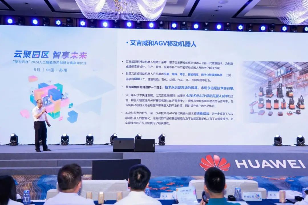 艾吉威總裁助理/產品總監陸宏峰在主題為“艾吉威攜手華為云,打造AI移動機器人”的分享中表示,隨著AI技術的快速發展,將AI技術與AGV移動機器人技術進行創新結合,能夠大幅提升AGV移動機器人的產品競爭力和多領域智能化物流的運作效率,產品智能化水平的提升,亦可為客戶提供更加便捷、高效的服務。未來,艾吉威與華為將展開全面合作,為移動機器人發展持續注入新活力。
