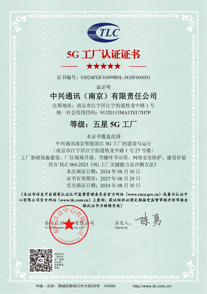 值此工業(yè)和信息化部《5G全連接工廠建設(shè)指南》發(fā)布兩周年,國內(nèi)首個(gè)五星5G工廠——中興通訊南京智能濱江5G工廠(以下簡(jiǎn)稱“濱江工廠”)建設(shè)完成,通過中國信息通信研究院(簡(jiǎn)稱“中國信通院”)泰爾認(rèn)證中心認(rèn)證,成為5G技術(shù)與電子設(shè)備制造業(yè)深度融合與全面應(yīng)用的新標(biāo)桿。