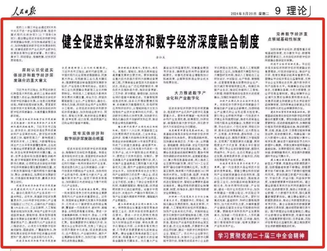 《〈中共中央關(guān)于進(jìn)一步全面深化改革、推進(jìn)中國式現(xiàn)代化的決定〉輔導(dǎo)讀本》收錄了工業(yè)和信息化部黨組書記、部長(zhǎng)金壯龍的署名文章《健全促進(jìn)實(shí)體經(jīng)濟(jì)和數(shù)字經(jīng)濟(jì)深度融合制度》。8月20日,《人民日?qǐng)?bào)》理論版刊發(fā)此文,“工信微報(bào)”為您全文分享如下——