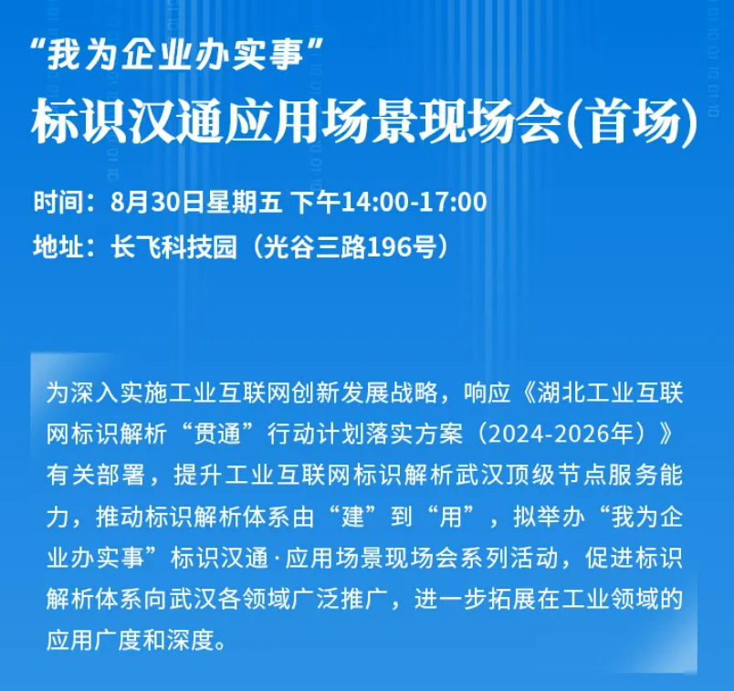 為深入實(shí)施工業(yè)互聯(lián)網(wǎng)創(chuàng)新發(fā)展戰(zhàn)略,響應(yīng)《湖北工業(yè)互聯(lián)網(wǎng)標(biāo)識(shí)解析“貫通”行動(dòng)計(jì)劃落實(shí)方案(2024-2026年)》有關(guān)部署,提升工業(yè)互聯(lián)網(wǎng)標(biāo)識(shí)解析武漢頂級(jí)節(jié)點(diǎn)服務(wù)能力,推動(dòng)標(biāo)識(shí)解析體系由“建”到“用”,武漢市經(jīng)濟(jì)和信息化局、工業(yè)互聯(lián)網(wǎng)產(chǎn)業(yè)聯(lián)盟聯(lián)合舉辦“我為企業(yè)辦實(shí)事”標(biāo)識(shí)漢通·應(yīng)用場(chǎng)景現(xiàn)場(chǎng)會(huì)系列活動(dòng),旨在促進(jìn)標(biāo)識(shí)解析體系向武漢各領(lǐng)域廣泛推廣,進(jìn)一步拓展在工業(yè)領(lǐng)域的應(yīng)用廣度和深度。