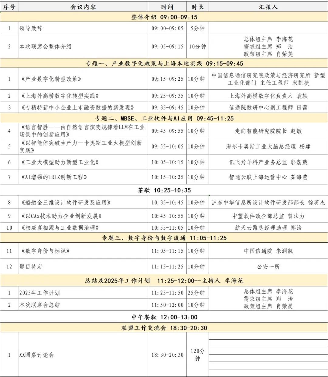 本次全會,總體組、需求組與政策法規(guī)與投融資組召開聯(lián)席會議,就產(chǎn)業(yè)數(shù)字化政策與上海本地實踐,MBSE、工業(yè)軟件與AI應用,數(shù)字身份與數(shù)據(jù)流通三大方向,與聯(lián)盟伙伴進行理念碰撞和經(jīng)驗分享。