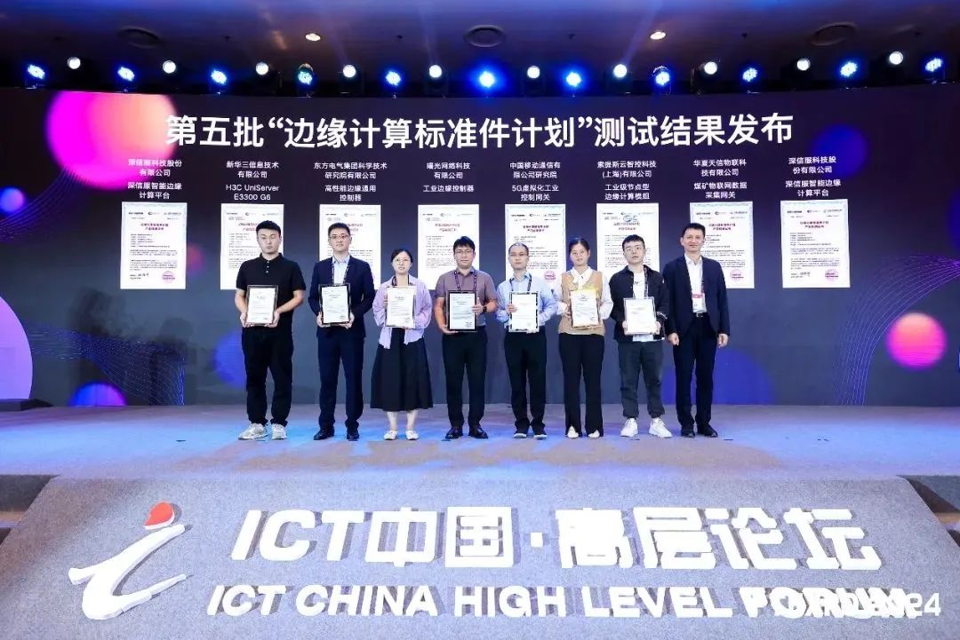 2024年9月26日,“邊緣計(jì)算標(biāo)準(zhǔn)件計(jì)劃”第五批測(cè)試結(jié)果在新型工業(yè)網(wǎng)絡(luò)創(chuàng)新論壇暨2024工業(yè)互聯(lián)網(wǎng)網(wǎng)絡(luò)創(chuàng)新大會(huì)上正式發(fā)布,由中國(guó)信息通信研究院總工程師敖立為通過(guò)測(cè)試企業(yè)頒發(fā)證書(shū)。