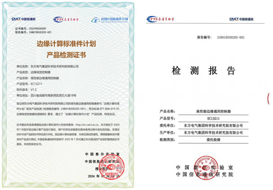 經過中國信息通信研究院集中測試,東方電氣集團科學技術研究院有限公司(以下簡稱“東方研究院”)自主研發的EC13211高性能邊緣通用控制器順利通過本次“邊緣計算標準件計劃”產品測試,并且在多個領域進行實際應用部署,有效推動了智能制造智慧化與數字化轉型升級。