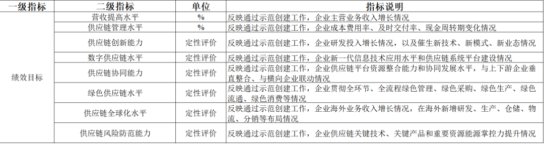 中國的“全國供應鏈創(chuàng)新和應用示范工作”是年度固定評選工作,參照2022年《全國供應鏈創(chuàng)新與應用示范創(chuàng)建工作規(guī)范》的示范企業(yè)績效考評主要指標如圖3。