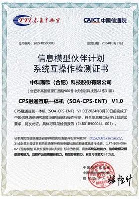 中科斯歐是工業互聯網產業聯盟信息模型伙伴計劃伙伴單位,自主研發的CPS融通互聯一體機順利通過中國信通院組織的“信息模型伙伴計劃”系統互操作檢測。