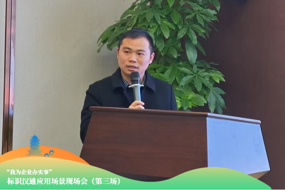 2024年12月18日,“我為企業(yè)辦實(shí)事”標(biāo)識漢通應(yīng)用場景現(xiàn)場會(第三場)走進(jìn)東湖高新。活動由中國信息通信研究院工業(yè)互聯(lián)網(wǎng)與物聯(lián)網(wǎng)研究所中部運(yùn)營中心副主任黃子沛主持。