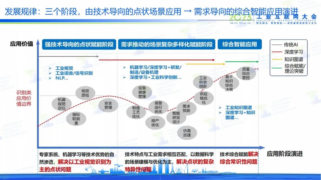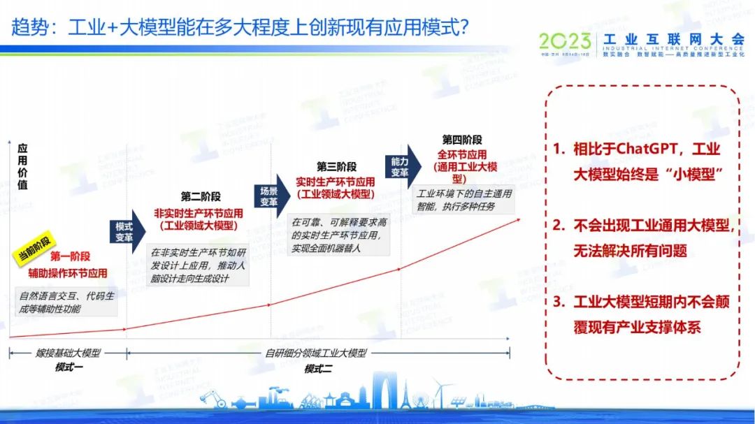 “當前工業大模型未來應用發展分為兩大模式、四個階段,但也面臨數據、產業等方面挑戰。他認為:工業大模型是在現有工業智能可解問題的范疇之內提升效率或解決一些更深層次的問題,在短期內應該不會顛覆現有的產業支撐體系,更多的還是以被疊加的特點融入現有的工業產品。”