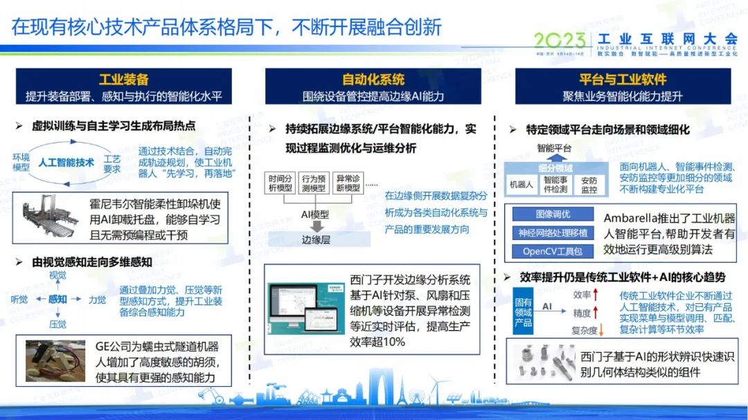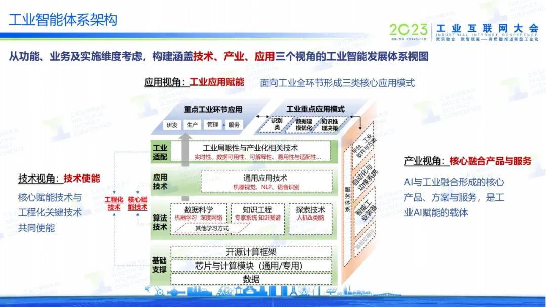 《工業智能白皮書》從體系內涵、技術、應用和產業等維度進行了闡述。體系方面,對目前工業智能面臨的問題進行了總結,提出了涵蓋三個視角的工業智能發展體系。技術方面,梳理了工業智能技術發展現狀,圍繞核心賦能技術創新與工程化突破兩個技術發展路徑進行深入分析。產業方面,梳理工業智能產業現狀與發展趨勢,對支撐工業賦能的核心技術產品進行分析。應用方面,總結工業智能應用發展總體歷程,從應用場景、國內外應用與行業應用三個角度開展細化分析。