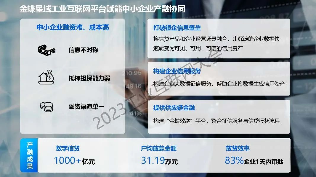 劉仲文表示工業互聯網推動領航企業向全要素、全流程、全生態數字化發展,加速中小企業產業集群模式轉變與可持續發展。金蝶星域工業互聯網平臺是以金蝶云蒼穹PaaS平臺為底座,為二十余行業的大型企業、中型企業和小微企業提供9大領域全流程數字化服務,賦能中小企業產融協同,實現數字化轉型與升級。