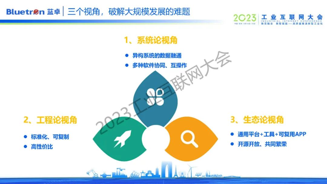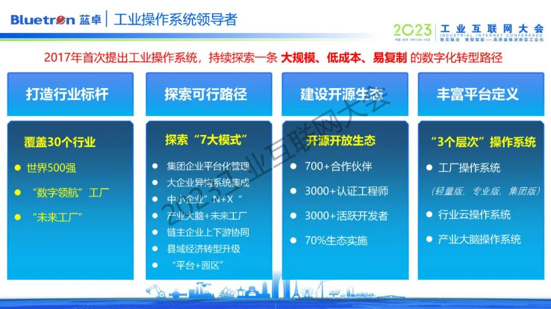 第二,探索可行路徑,藍卓在集團企業、大型企業、中小企業、產業大腦、鏈主企業、縣域經濟、園區等不同的模式路徑去探索實踐,挖掘工業操作系統的無限可能。