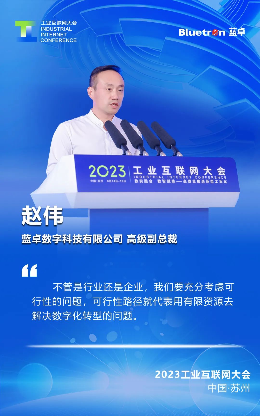 6月15日,在2023工業互聯網大會“工業互聯網最佳實踐高端論壇”上,藍卓數字科技有限公司高級副總裁趙偉發表了《數字化轉型的可行性路徑》的主題分享,并表示工業互聯網對企業不僅僅是一個工具和產品,也是企業數字化轉型的未來。