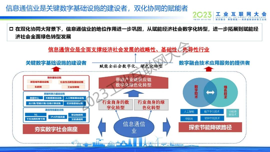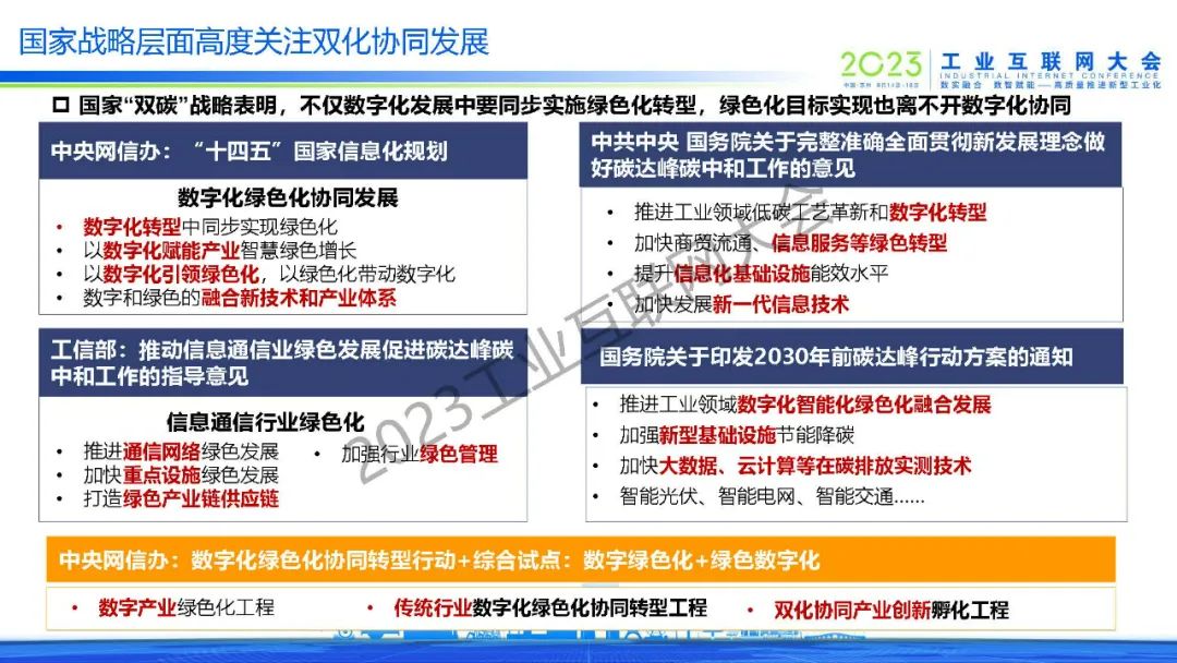 6月16日,在2023工業互聯網大會“數字助力碳達峰碳中和高端論壇”上,中國信息通信研究院產業與規劃研究所所長、碳達峰碳中和發展中心主任徐志發發表了《數字化綠色化協同轉型的洞察與思考》的主旨演講。