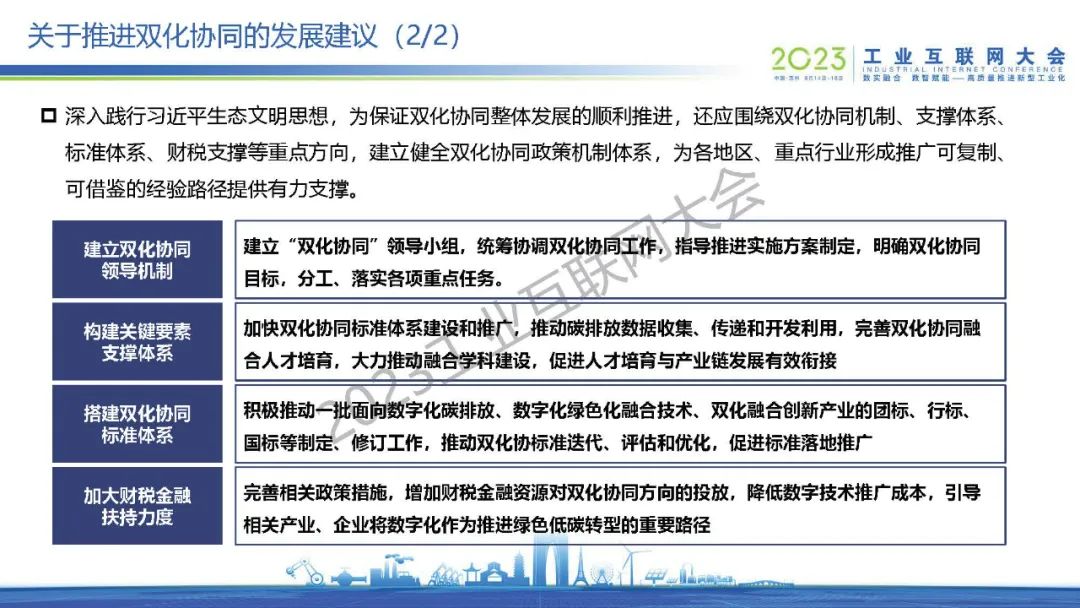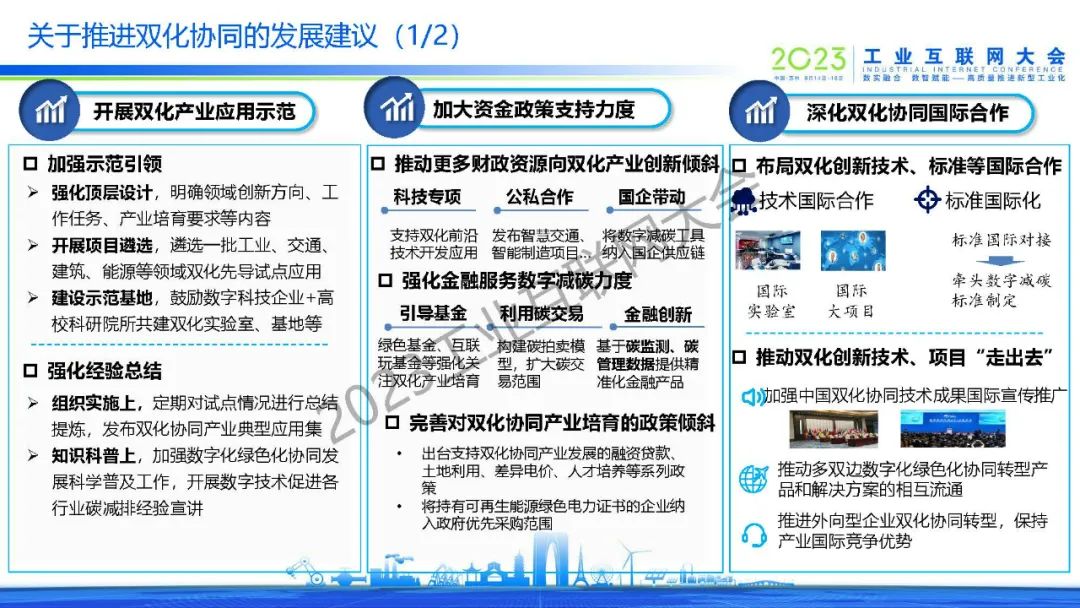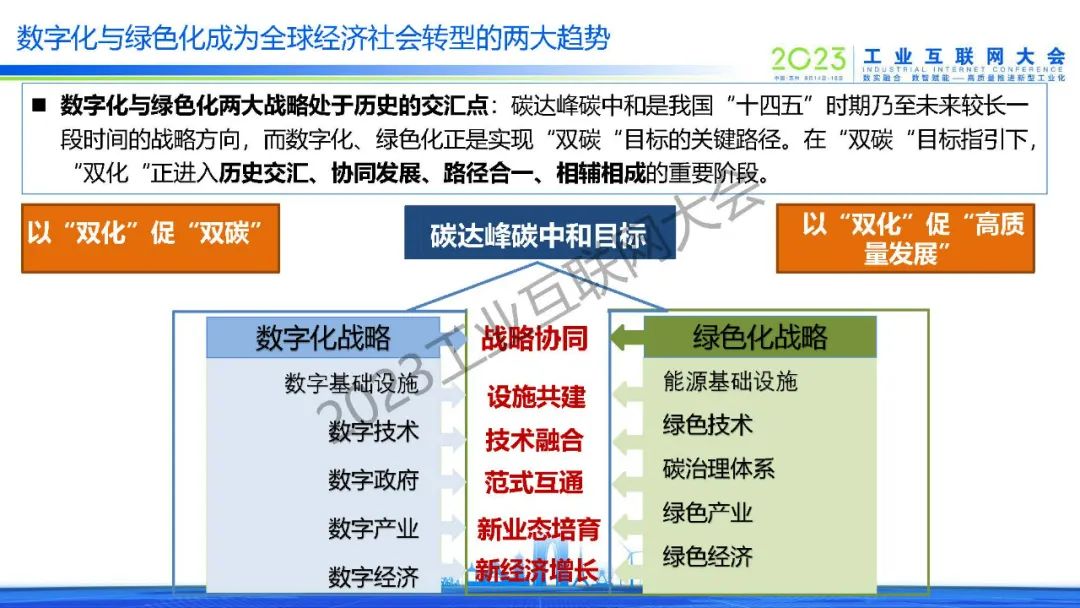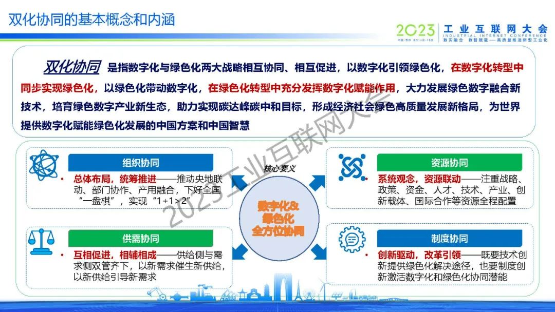 徐志發指出,雙化協同是指數字化與綠色化兩大戰略相互協同、相互促進,以數字化引領綠色化,在數字化轉型中同步實現綠色化,以綠色化帶動數字化,在綠色化轉型中充分發揮數字化賦能作用,大力發展綠色數字融合新技術,培育綠色數字產業新生態,助力實現碳達峰碳中和目標,形成經濟社會綠色高質量發展新格局,為世界提供數字化賦能綠色化發展的中國方案和中國智慧。