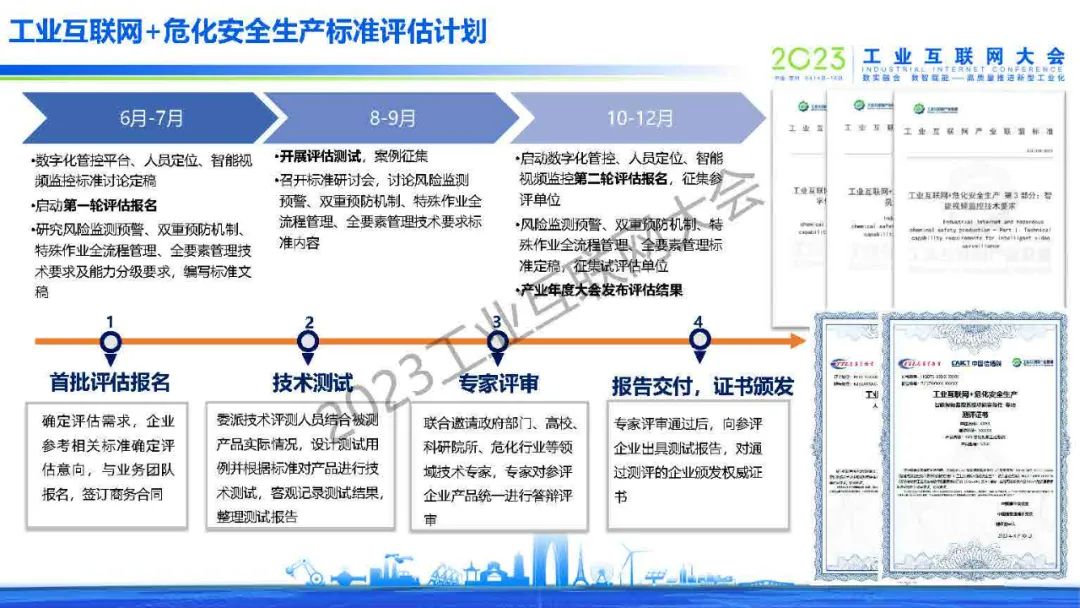 6月15日,在2023工業互聯網大會“工業互聯網+危化安全生產數字化轉型論壇”上,中國信息通信研究院泰爾終端實驗室戰略部業務主管/高級工程師朱玥發表了《“工業互聯網+危化安全生產”評估體系構建》的主題演講。