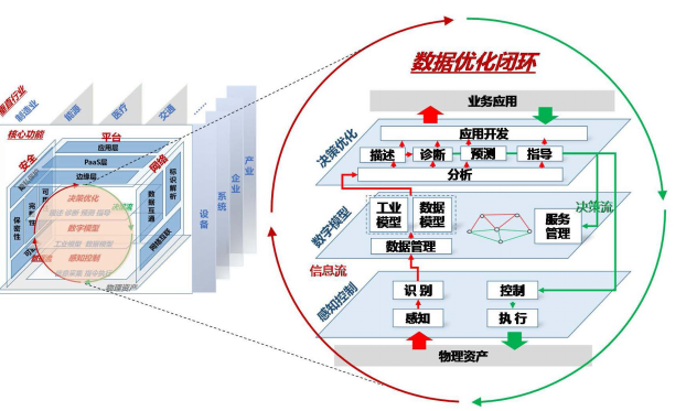 AII體系架構2.0模型提出用工業互聯網平臺技術,構建大數據閉環優化,感知、預測、優化企業經營
