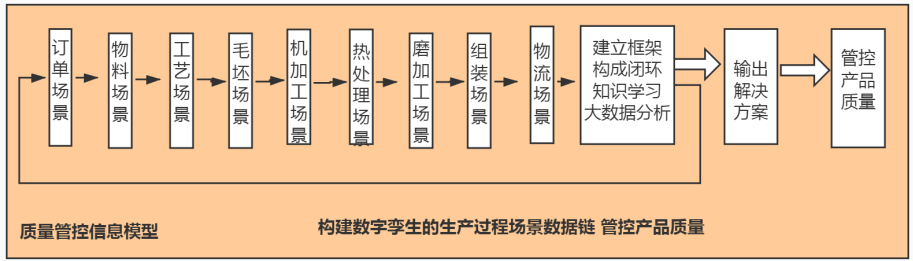 2、建立知識學習層(對應AII數字模型層),通過構建數字孿生的生產過程場景數據鏈,進行制造過程知識學習,預測分析、大數據積累,管控產品質量。