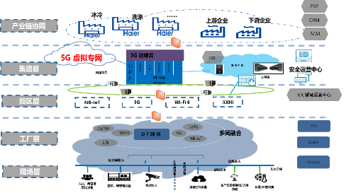 圖:多網融合的現場→工廠→園區→集團→產業鏈5層網絡架構