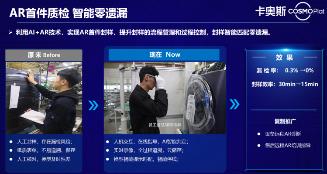 AR應用:包括AR首件質檢、遠程協作和巡檢等場景應用。利用5G AI+AR技術AR首件封樣,實現了實時大數據、全過程、云儲存,質檢效率大幅提升,通過AR作業指導書的方式指導檢驗人員進行精準檢測,檢驗周期由原來的2個小時縮短到1小時左右,檢測過程可實時回傳留存在MEC上,5G網絡解決了WIFI傳輸不穩定、干擾大的問題。另一方面當生產現場出現問題,可通過AR呼叫遠程專家進行“零距離”指導 ,專家可將指導信息、設備操作說明書、圖紙、文件等也可以通過5G網絡實時同步到現場AR終端,指導現場維修或裝配人員,裝配效率、維修效率大大提升。
