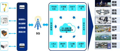在數據采集方面,利用5G企業專網,實現百萬工業設備實時感知、動態控制,設備數據模型(生產數據、運行狀態、運行參數)動態實時獲取。