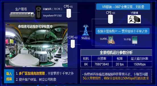 5G+全景+VR 全景現(xiàn)場(chǎng),應(yīng)用5G的大帶寬、移動(dòng)性,結(jié)合全景相機(jī)精確同步拍攝、自由視點(diǎn)、 VR等技術(shù),實(shí)現(xiàn)生產(chǎn)現(xiàn)場(chǎng)全景呈現(xiàn),縮短空間距離,助力主管隨時(shí)隨地?zé)o死角掌控現(xiàn)場(chǎng);利用全景直播,管理者掌控于千里之外,實(shí)現(xiàn)高效管理、提升客戶體驗(yàn)、樹立公司形象的目的。