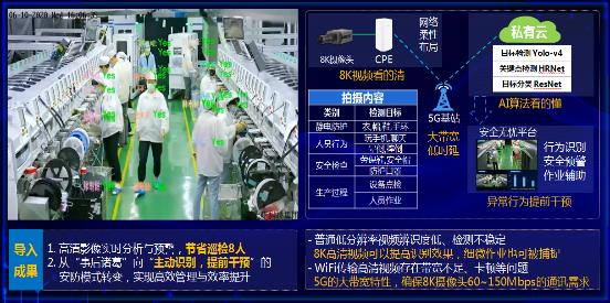(5) 5G+8K+AI+VR實(shí)現(xiàn)生產(chǎn)現(xiàn)場(chǎng)全景呈現(xiàn)及人員行為識(shí)別