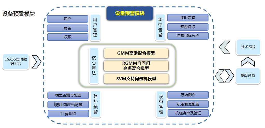 CSASS系統采用當前人工智能領域的最新成果,融合自然語言處理、智能數據預處理、深度學習等技術,與傳統的統計學算法、機理分析相結合,在機組可靠性與經濟性兩大主線所包含的諸多應用功能中,取得設備預警、高級診斷、以可靠性為中心的維護、數據重構、自動優化、負荷優化等多項行業內的技術突破,并以技術監控為抓手,實現技術與運營的深度融合。