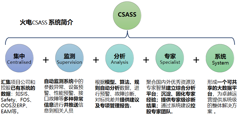 1、 華潤電力在多年的企業發展過程中,形成了“火電為主、控制上下游、多業態協同、實現低成本競爭”的發展模式。在新的市場競爭條件下,華潤電力迫切需要推進創新轉型發展,打造企業核心競爭力。火電 CSASS 分析專家系統是華潤電力落實集團“華潤匯”戰略,打造行業安全可靠生產、高效運行、綠色環保的標桿,構建專業知識和能力高地,引領行業業務模式創新的重要抓手。