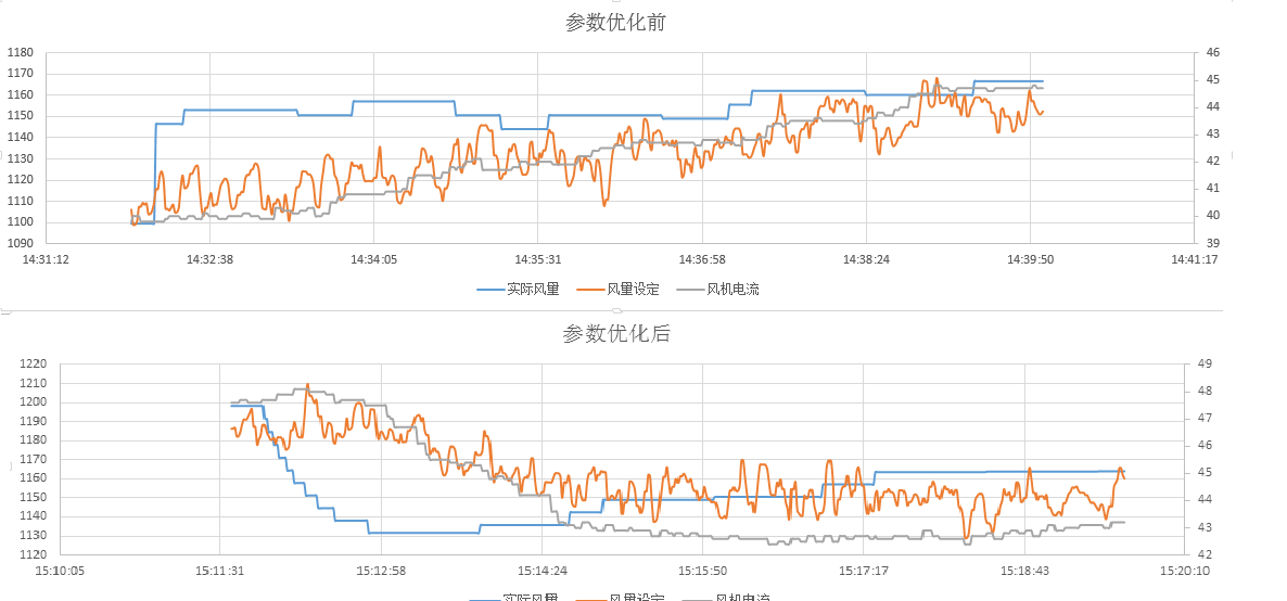 圖22 優化前后的氧量分布,優化后氧量控制更準確