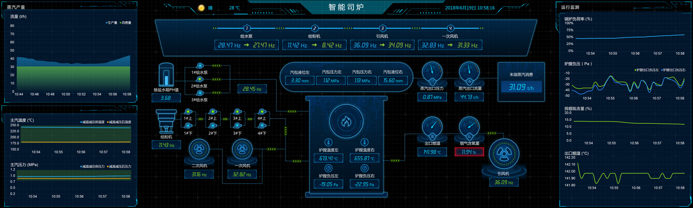 ? 智能司爐:司爐是熱力行業最核心的生產過程,司爐的優劣直接影響到安全和效益;智能司爐是通過對司爐過程建立智能模型,利用大數據技術對司爐過程進行持續優化,從而提高生產的效益,降低成本;