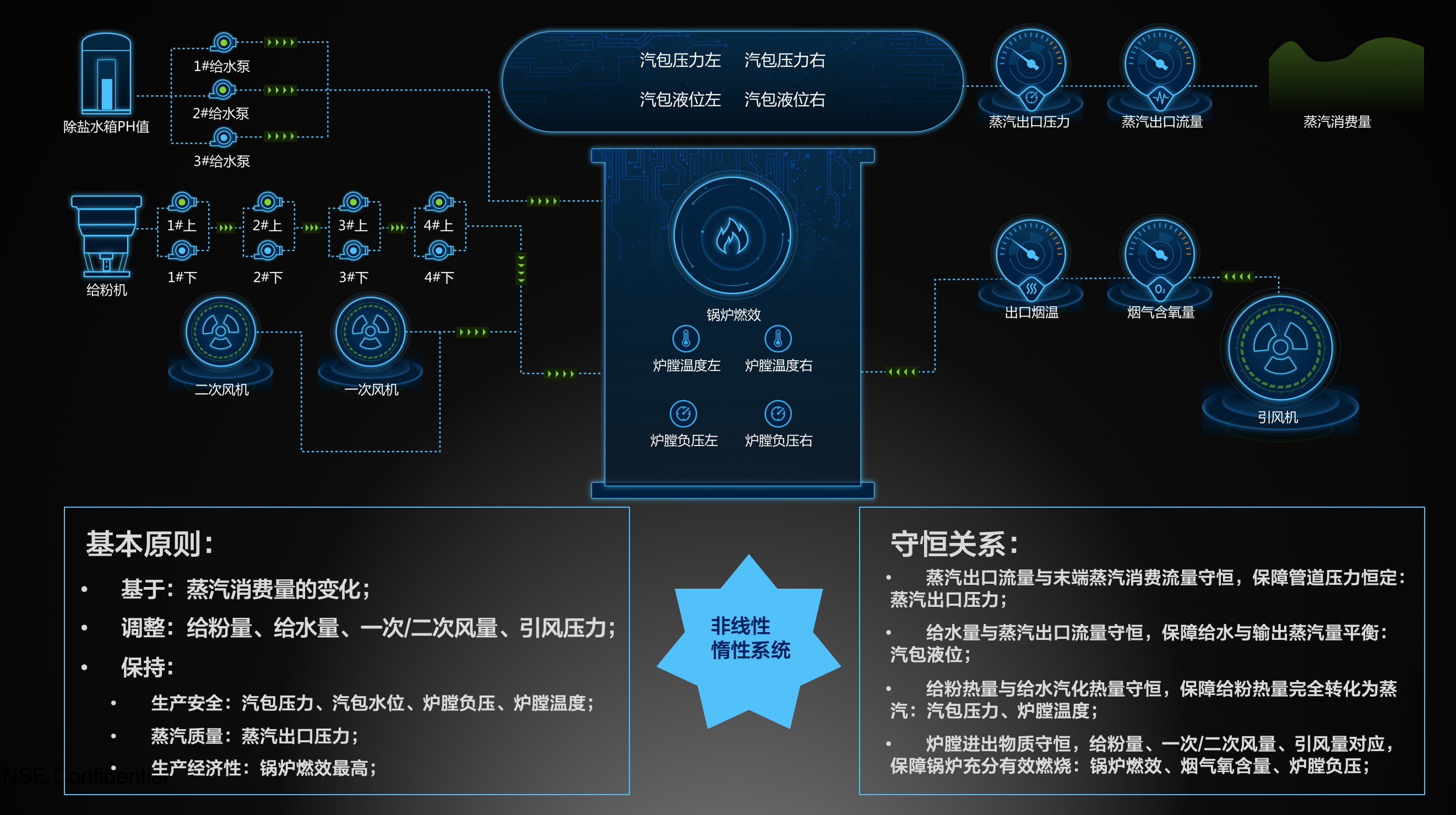 熱能生產的核心控制工藝過程是“非線性、強耦合、大延遲”的多參數組合優化問題,傳統的基于人工和基于計算模型的優化方法在實踐中都被證實效果不理想,本項目提出了一套基于數字孿生的數據模型,將工業機理、專家知識、機器學習和深度學習技術進行有機融合,有效地對整個生產工藝過程進行個性化建模,基于模型實現生產過程的安全故障預警和診斷、生產工藝控制的智能化優化,實現安全生產、效益提升、節能環保等效果。