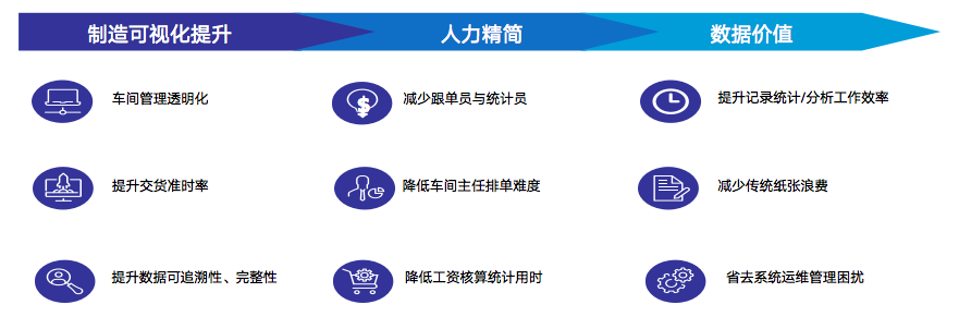 制造數(shù)據(jù)的可視化為運營決策提供大量的數(shù)據(jù)支撐,并為管理者提供有效的 管理實時工具,降低管理難度,提升管理效率。