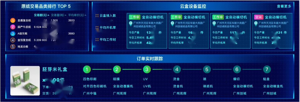 基于平臺及MES系統(tǒng)實時監(jiān)控訂單,提高訂單交付和原紙供應(yīng)時效。結(jié)合訂單生產(chǎn)數(shù)據(jù),為千鳥原紙和千鳥回收業(yè)務(wù)提供支撐。